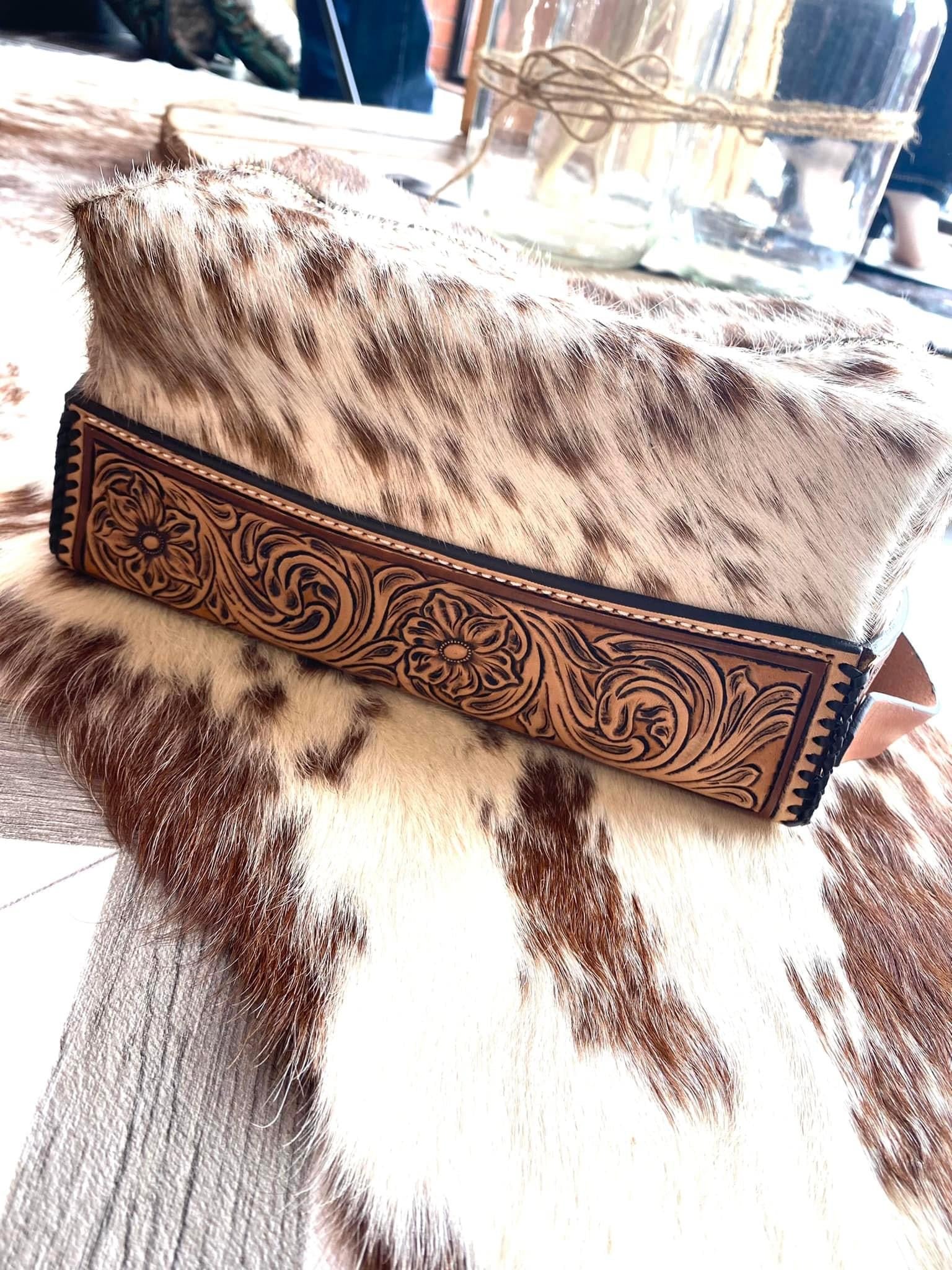 Collapsable top makes these an easy fit into your bathroom drawer. These are also great for jewelry or makeup! The inside is lined with a smooth leather for easy cleaning. These are roughly 5” tall, 6” wide and 10” long.