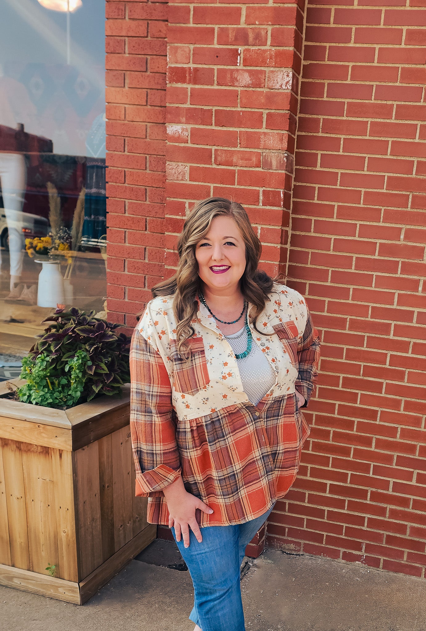 Orange plaid top/ Plus