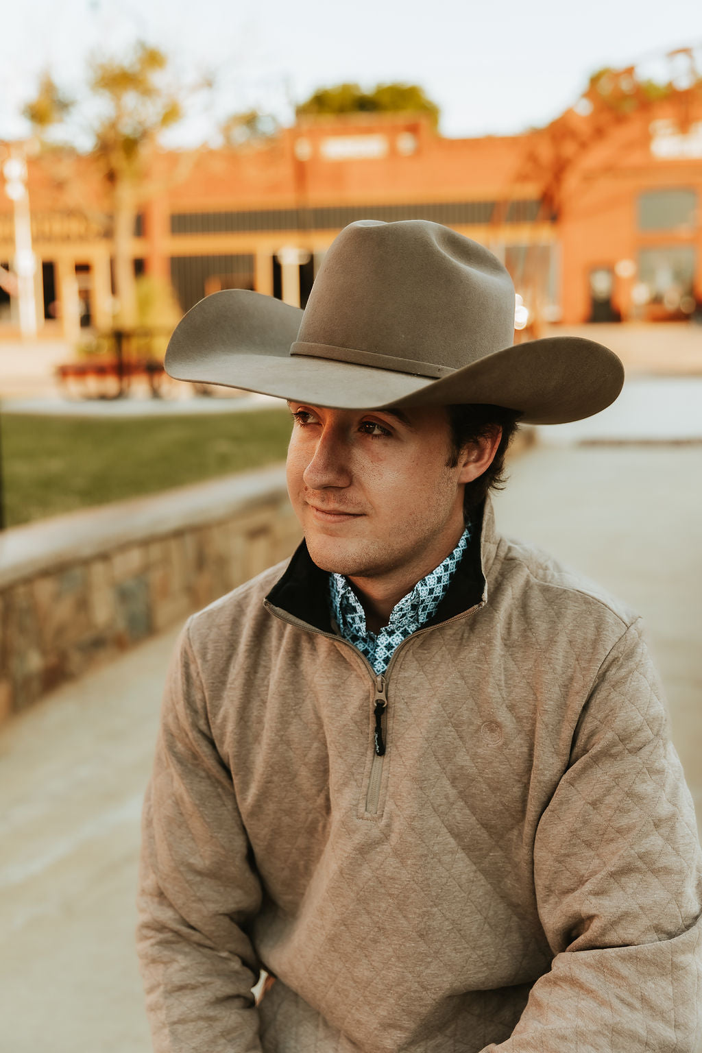 Angled Front Welt Pockets, Set in Sleeves, 1/4 Zip, Straight Hem. made of 77% Polyester / 23% Cotton.